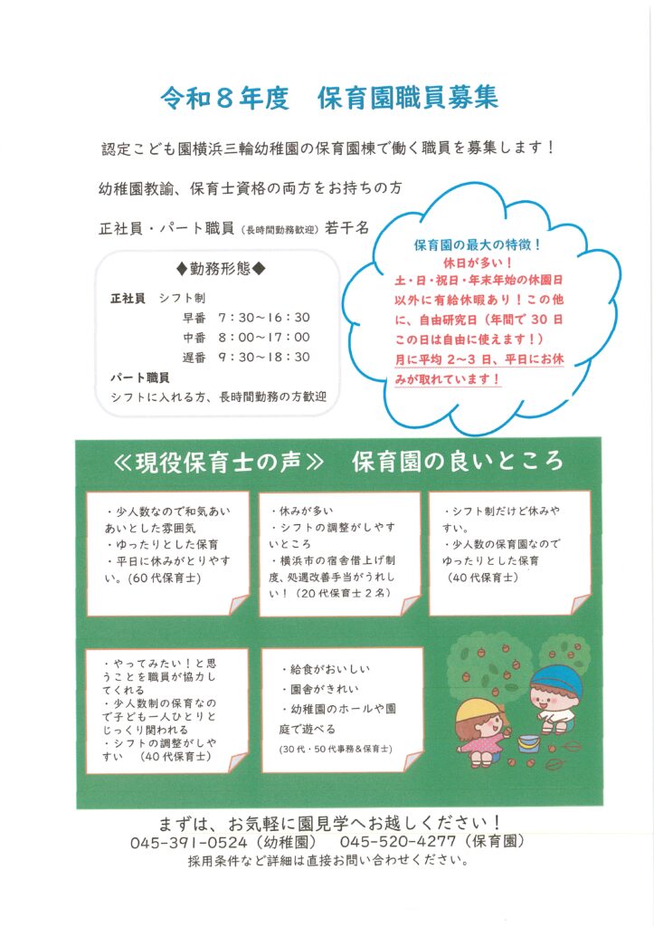 令和8年度 保育園職員募集🌸